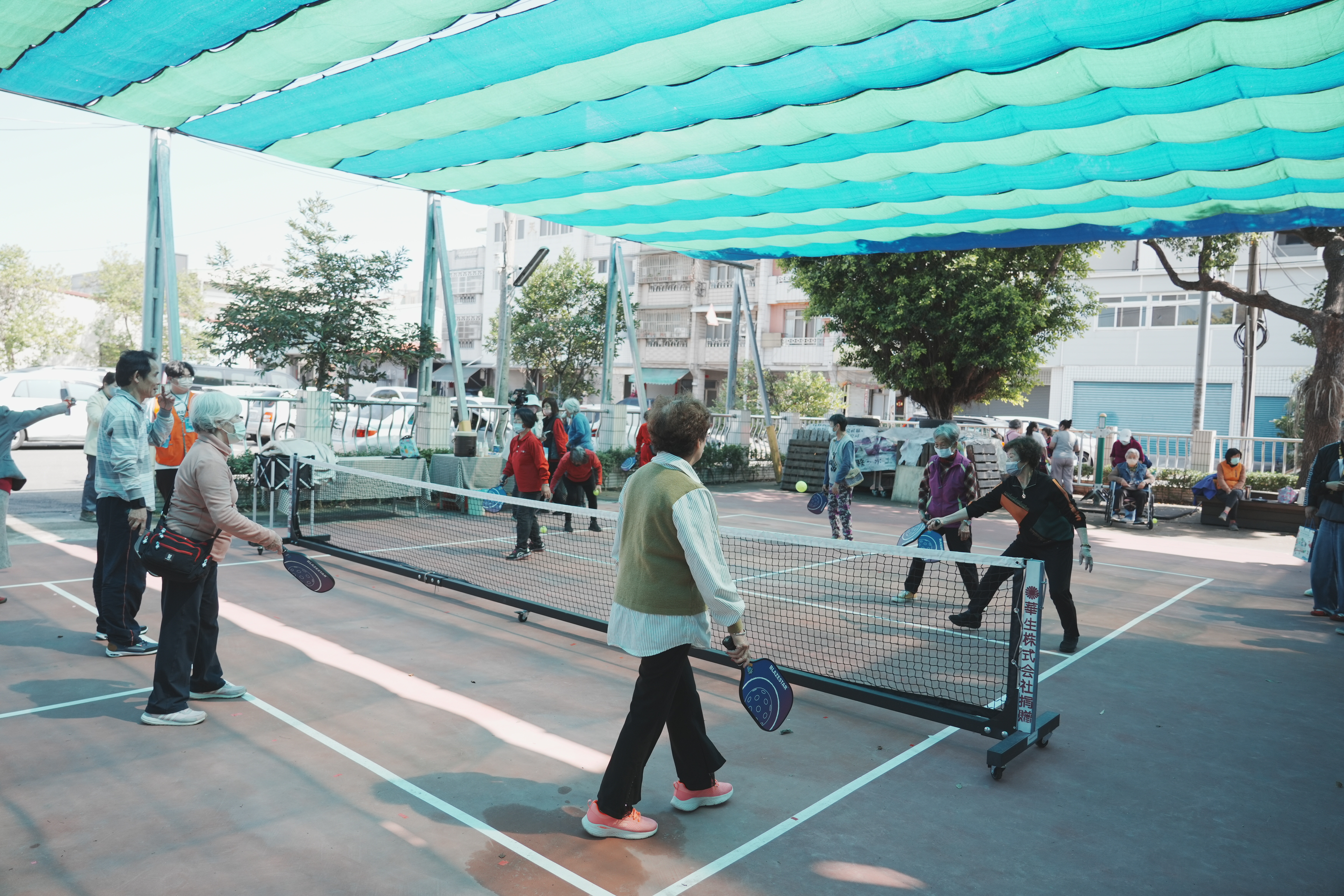 于草屯镇公所、地方民意代表与御史里、御史社区发展协会的支持与协力下,亚洲大学护理学院USR计画与企业ESG接轨,由丞石运动事业有限公司无偿赞助御史社区建置专业的匹克球场,让草屯镇社区多了一座安全、友善、永续的运动场域,高龄匹克球运动处方能顺利落地推展。今天御史社区幸福匹克球球场的启用,不只是硬件落成,更象征御史社区在健康促进与世代共融上,再向前跨出关键一步。