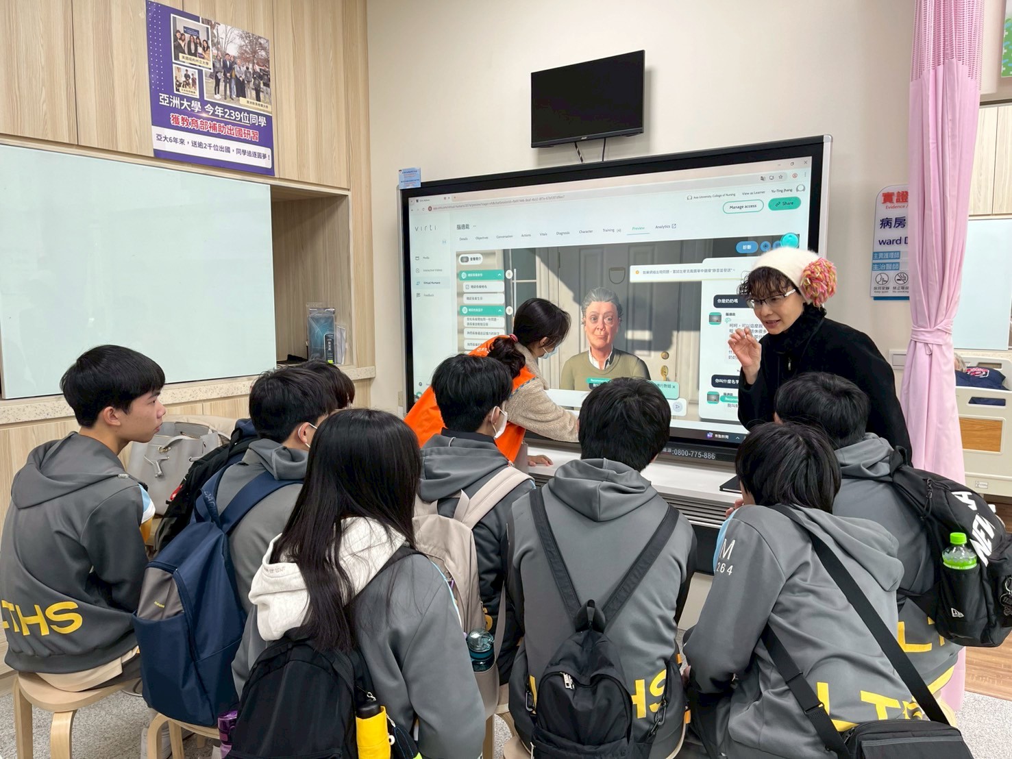 亞大護理學院為協助高三生定向未來,於2026年1月客製化「健康照護元宇宙體驗列車」自主學習課程,串聯彰化和美高中、彰化高商及台中嶺東高中,引領高中師生深入護理學院各系探索,透過生成式AI虛擬爺奶互動、AR擴增實境與醫療照護元宇宙體驗、「解碼人體結構」與「智慧嬰兒照護」體驗,以及「創傷縫合」、「創傷急救室」、「手術實境秀」、「高齡模擬體驗」等擬真照護實作,讓高中生親身感受智慧照護的創新魅力,並在實作中深化對醫療照護專業的理解。
